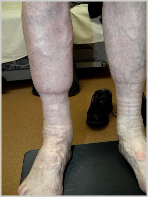 2: Sock line & Swelling - As the fluid pools in the legs due to pressure in the vein, you would notice ‘Sock line’ marks at the ankles later in the day. This progresses to swelling in the ankle area